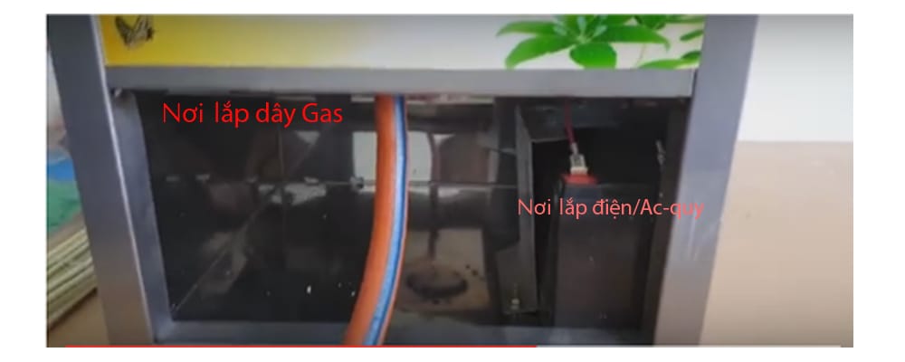 Ngày ngày chúng ta đi qua cửa hàng tạp hóa hoặc đi qua cổng trường bắt gặp những người bán kẹo bông nhìn rất đẹp, rất lãng mạn mà không biết chúng tạo ra bằng cách nào phải không ạ? Sau đây Dũng Doanh sẽ hướng dẫn bạn làm kẹo bông bằng “Máy làm kẹo bông di động”. Chúng ta hãy làm quen với “Máy làm kẹo bông di động” dùng gas để đốt nóng đường, dùng điện(điện dân dụng 220V~50Hz hoặc dùng bình Ac-quy 12V) để tạo gió. Trước tiên chúng ta lắp đặt bình gas vào chân gas, lắp điện vào nguồn điện/bình điện như hình: